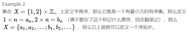 复习拓扑时在知乎上看到这一篇文章: 拓扑学|笔记整理(4)——引入,基,常见拓扑举例, 对于其中在具备字典序定义的集合上定义序拓扑的例子有点懵逼, 现在应该算是基本想通了, 大致做个记录~
