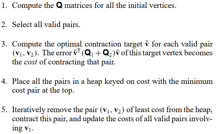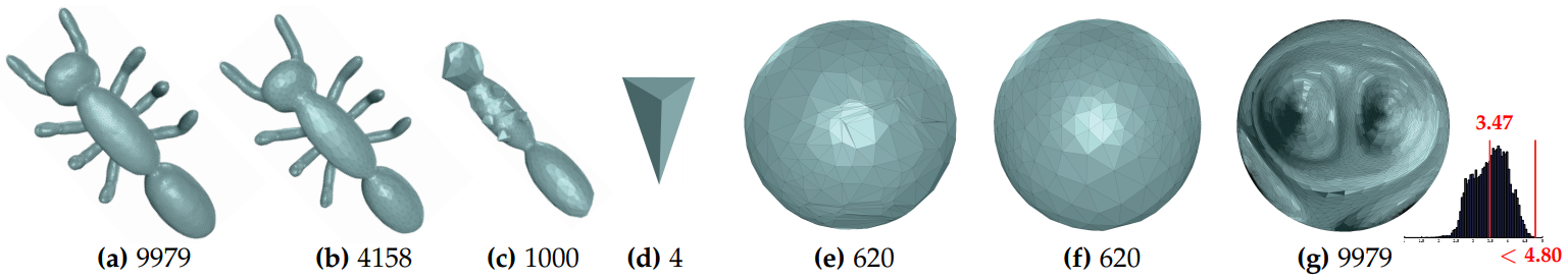 这是在2007年便已经提出的一种算法, 其主要的算法思想是若当前的局部操作会使得当前网格与输入网格之间的Hausdorff距离大于给定的阈值, 则不执行当前的局部操作, 从而使得当前网格始终处于一个Error-Bounded的可行集里. 说实话, 我一直以为Error-Bounded Method是从理论上证明有界, 非常期待看到相关证明. 事实证明, 是我想太多了……