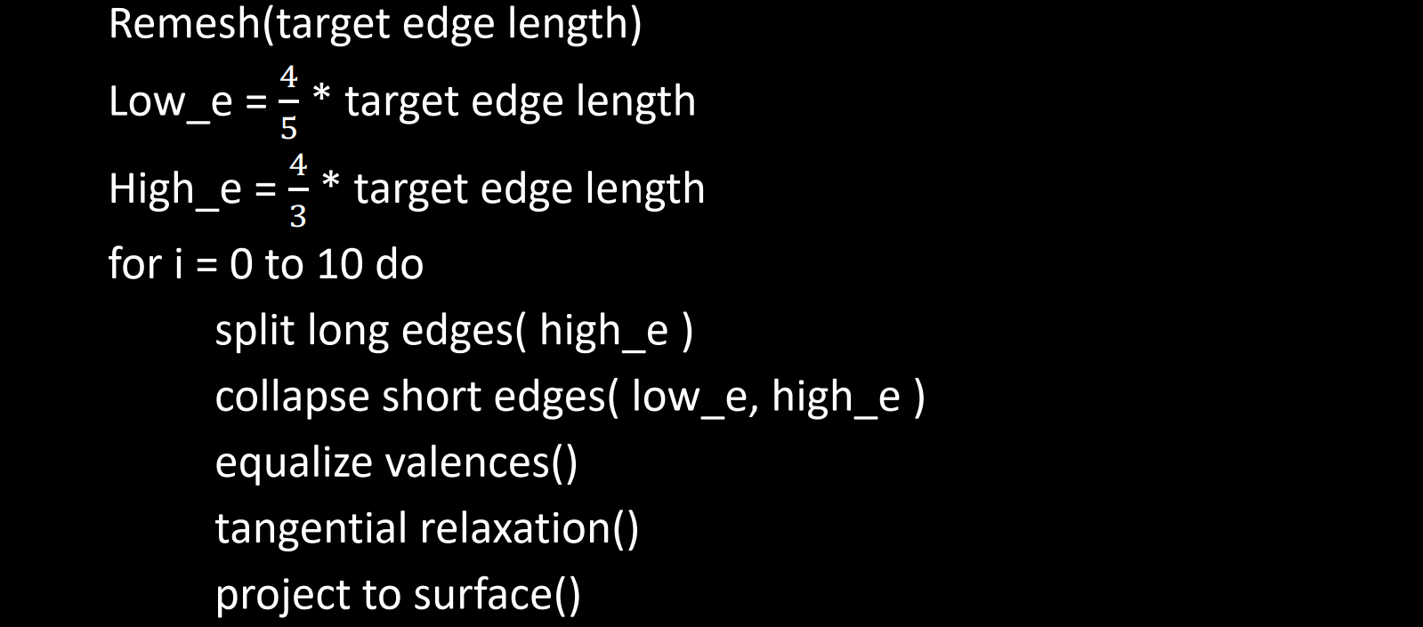 $\cdot$ 去除大角度: Edge Splitting.