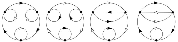 3. 书上P238例1的证明中, 指出当$n \ge 2$时, 圆上镶嵌(即一点并) $n – 1$个小圆后得到的空间是$S^1 \vee S^1$的复迭空间, 即$n$个圆的一点并是2个圆的一点并的复迭空间. 事实上, 这在上一篇文章中已经提及, 只不过上一篇文章中未列出相应的多边形表示, 补充如下.