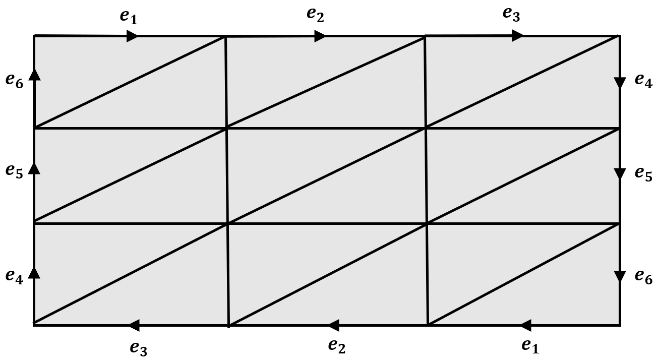 $\\$ 需要注意的是, 下图所示的三角剖分并不能成为射影平面$RP^2$的多边形表示的三角剖分.